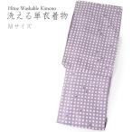 洗える着物 単衣 小紋 Mサイズ 仕立て上がり 単品 薄紫 格子 女性 レディース 和装 和服 春 秋 きもの カジュアル 普段着 ポリエステル