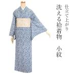 着物 袷 洗える 仕立て上がり 単品 オフホワイト地 ブルーグレー 花柄 女性 レディース 和装 和服 きもの カジュアル 春 秋 冬 ポリエステル