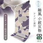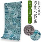 洗える着物 反物 小紋 紬風 レディース セミオーダー 仕立て付 紺 ベージュ 猫 迷彩 袷 単衣 テイジン素材 NKF 和装