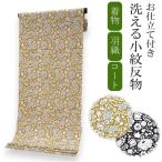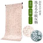 着物 反物 洗える セミオーダー 仕立て付 小紋 ベージュ ピンク 花唐草 XS S M L XL 袷 単衣 和装 和服 女性 小紋 きもの 羽織 コート ポリエステル