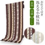 着物 反物 洗える セミオーダー 仕立て付 小紋 ブラウン 薄ブルーグリーン 更紗 縞 XS S M L XL 袷 単衣 和装 和服 女性 小紋 きもの 羽織 コート ポリエステル