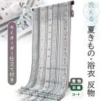 洗える 夏着物 浴衣 反物 紗 セミオーダー 仕立て付き ホワイト地 ブルー 更紗 縦縞 5サイズ 和つう ポリエステル 夏 小紋 カジュアル 和装 和服 女性