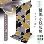 洗える着物 反物 小紋 紬風 レディース セミオーダー 仕立て付 黄 グレー 猫 迷彩 袷 単衣 テイジン素材 NKF 和装