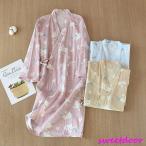 パジャマ レディース 甚平 ワンピース 夏服 ルームウェア ガーゼ 綿 七分袖 春夏秋冬 部屋着 寝巻き ロング丈 体型カバー 女性用 夏 夏用 入院 花柄