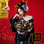 花魁浴衣 浴衣 レディース 浴衣セット 安い 女性 花魁 華やか 花柄 モノトーン 5点セット 肌襦袢 下駄 兵児帯 平帯 白 赤 金 銀 豪華