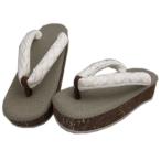 草履 ぞうり 濃グレー濃茶台 白銀菱鼻緒 フリー 24cm 着物 小紋 紬 カジュアル 女性用 単品