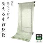 着物 洗える 反物 夏 紗 単衣 セミオーダー 仕立て付 薄黄緑色 唐草 レディース XS S M L XL 小紋 夏着物 新品 和装 和服 きもの 羽織 コート 女性