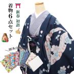 着物 初詣 6点セット きもの 羽織 名古屋帯 帯揚げ 帯締め 御朱印帳 M 渋藤色 縞 雪輪 着物 黒青 松葉帯 紺色 羽織 レディース 女性 和装 和服 お正月