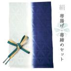 帯揚げ 帯締め セット 正絹 ブルー 水色 ぼかし 幾何学 帯あげ 渋青 金 帯〆 和装 レディース フォーマル