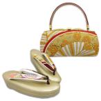 草履バッグセット 西陣織 正絹 帯地 横丸型 金糸入り金色地 菊紋様赤白ライン L 日本製 振袖 成人式 卒業式 袴 訪問着 着物 クッションぞうり