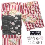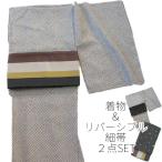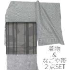 着物 セット 2点セット M 疋田 大粒 グレー 小紋 縞 水玉 名古屋帯 モノトーン ポップ カジュアル 着物set 袷 和装 和服 きものセット BFセール