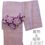 着物 セット 2点セット L 疋田 葡萄 小紋 紫 水玉 華紋 細帯 ポップ カジュアル 着物set 袷 和装 和服 きものセット BFセール