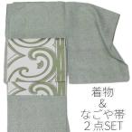 着物 セット 2点セット L 疋田 グリーン 抹茶 小紋 波 名古屋帯 カジュアル 着物set 袷 和装 和服 きものセット BFセール