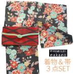 着物 セット 3点セット 小紋 ナカノヒロミチ L 黒 花 百花 細帯 赤 立涌 花 帯締め 緑 若草 カジュアル 着物set 袷 和装 和服 きものセット BFセール