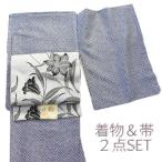 着物 セット 2点セット M 疋田 大粒 濃紺 小紋 百合 白黒 名古屋帯 モノトーン ポップ カジュアル 着物set 袷 和装 和服 きものセット BFセール