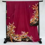 振袖 中古 エンジ 正絹 古典 裄65cm 身丈166.5cm 美品 M サイズ 成人式 4471