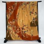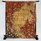 振袖 中古 大正ロマン ブラウン 黄色 正絹 古典 裄65.5cm 身丈163cm 美品 M サイズ 成人式 4478