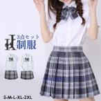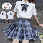 制服 3点セット 女子高生 学生服 JK スクール シャツ 半袖/長袖 制服 リボン スカート チェック柄 レディース セットアップ 高校生 中学生 通学 大人 衣装