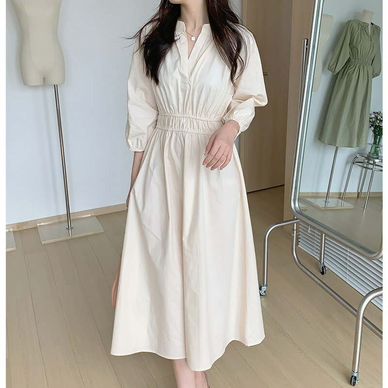 【送料無料 20%OFF】2色展開 実物写真 夏季新作 レディースVネックワンピース ストレッチ ギャザースカート