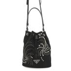プラダ ハンドバッグ 巾着バッグ ラインストーン スタッズ ビーズ ナイロン 1BE067 PRADA 2wayショルダーバッグ 黒