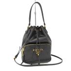 PRADA デュエット 巾着 ショルダーバッグ レザー ブラック 1BH038