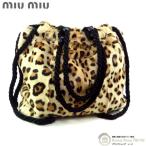 ミュウミュウ (MIUMIU) レオパード ハラコ ヒョウ柄 巾着 ドローストリング トート ショルダー バッグ 5BG060 ベージュ(中古)