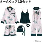 ルームウエア 7点セット レディース 長袖ブラウス シャツ キャミソール ショートパンツ ロングパンツ ワイド シュシュ アイマスク 巾着袋 ナイトウ