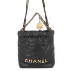 シャネル CHANEL シャネル22 AS3980 ブラック ゴールド金具 ラムスキン ミニハンドバッグ 巾着型 ショルダーバッグ レディース 展示未使用品 101833545