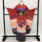 振袖5点セット 裄68cm 身丈170cm 熨斗目柄 振袖 帯 帯揚げ 帯締め 赤 グレー L サイズ 2693