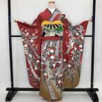 振袖フルセット 裄68cm 身丈168cm 総柄 刺繍 振袖 帯 帯揚げ 帯締め 正絹 エンジ 紺 L サイズ 3341
