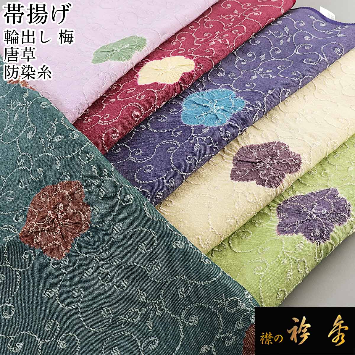 《20%OFF》衿秀 公式 帯揚 帯揚げ おびあげ 輪出し 絞り 梅 防染糸 唐草 正絹 日本製 えりひで 和装小物 和小物 襟の衿秀