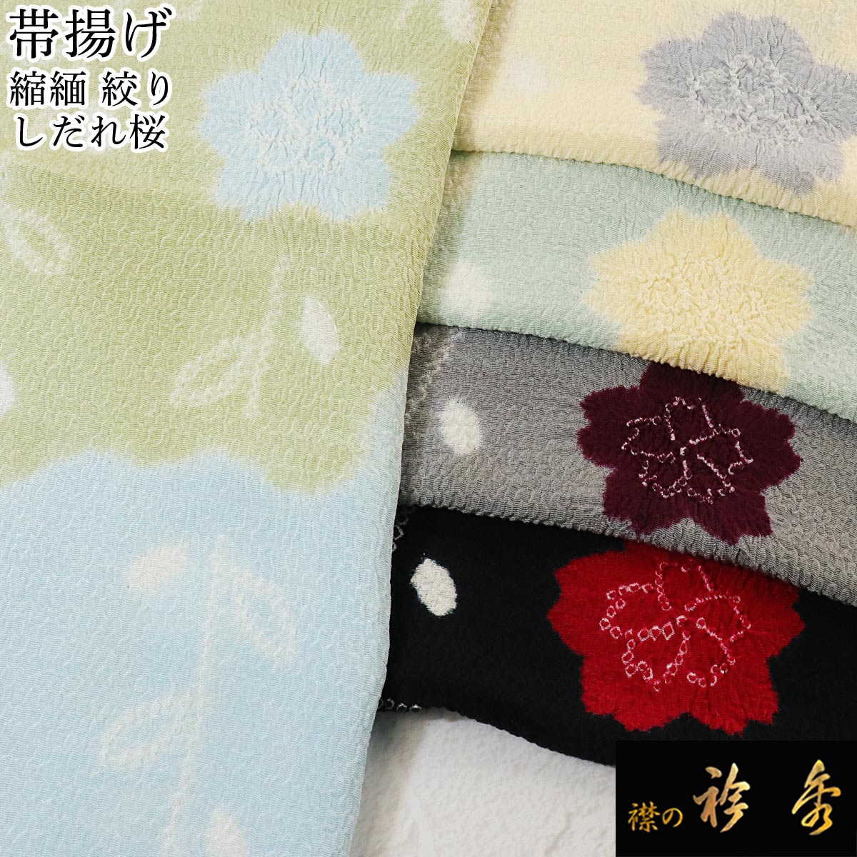 《20%OFF》衿秀 公式 帯揚 帯揚げ おびあげ 縮緬 絞り しだれ桜 振袖 正絹 日本製 和装小物 和小物 えりひで 襟の衿秀