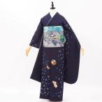 【中古】正絹 振袖 販売6点セット 半衿付き長襦袢・帯・帯揚・帯〆・重衿付き 希少なSサイズ ちょっとレトロなネイビー 着物だけなら29,920円(税込)