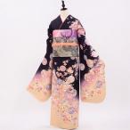 【中古】正絹 振袖 フルセット 販売6点セット アンティークな可愛さの和柄 黒 着物だけなら24,200円(税込)