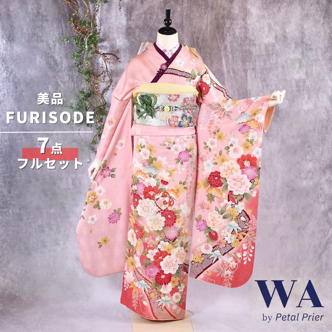 振袖フルセット 裄64.5cm 身丈157.5cm 長襦袢セット 二分の一成人式 帯 帯揚げ 帯締め 正絹 ピンク S サイズ 2687