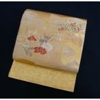 袋帯 未使用 金板箔地 牡丹 菖蒲 桔梗手織り柄 正絹 7948