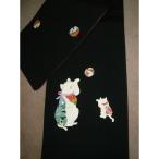 【上州 桐生絞】【泉織物謹製】お仕立サービス☆正絹 染九寸名古屋帯★月夜に猫