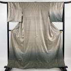 付下げ 身丈162cm 裄丈66cm M 袷 落款あり 扇子 草花 刺繍 金糸 灰茶 正絹 秀品 中古