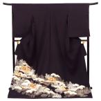 色留袖 紫黒色 仕立て付き 十日町老舗染匠 購入 販売 新品 文箱 扇子 刷毛目 松 菊 正絹 友禅 未仕立て 反物 礼装 フォーマル 結婚式 披露宴 絹 仕立て込み it-144