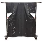 京やB079 特選訪問着 正絹 高級ちりめん訪問着 縦縞文様 扇子 文箱 刺繍 黒の着物 黒の訪問着 付下げ 附下 ガード加工済み 美品