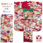 京都室町st. Sサイズ振袖6点セット 正絹 絵羽振袖 西陣織袋帯 その他小物6点セット 成人式 お正月 十三詣りに「赤 松に扇子」SEF235NFO629set