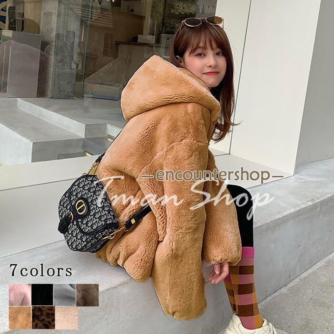 【期間限定10%OFF】ファーコート レディース 毛皮コート トップス 立ち襟 フード付き フェイクファー アウター カジュアル ゆったり 厚手 保温 ファション 暖かい