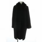 ノーブランド ステンカラーコート アウター カシミヤ 襟ファー 毛皮 フォックス ロング 比翼ボタン 肩パッド 13AR XL 黒