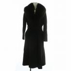 ベルテッドコート ロング フォックスファー 毛皮 カシミヤ混 ウール 黒 ブラック 38 M相当 レディース