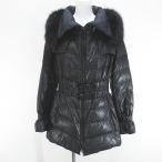 ヨーコドール YOKO D'OR ダウンコート ミディアム丈 毛皮 フォックスファー 38 黒系 ブラック ジップアップ 裏地 無地 レディース
