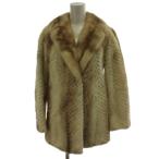 ファージャケット 毛皮コート ミディアム丈 ミンクファー ベージュ系 ジップアップ 裏地 レディース