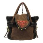 良品 archi アーキ ムートン レザー ハンド バッグ 鞄 ネイティブ 装飾 羊革 ファー 毛皮 刺繍 茶 ブラウン レディース 古着 中古
