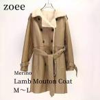 ラムムートン (スペイン産メリノ種) ラムレザー コート ベルト付き レディース 冬 アウター レザー 毛皮 カーキ M/L k1a019