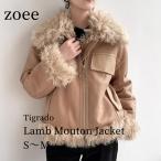 ラムムートン (Tigullio) ラムレザー ジャケット コート レディース 冬 アウター ムートン レザー 毛皮 ピンクブラウン S/M k1a21