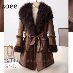 コート ラビットムートン ラムファー レディース 冬 ミドル アウター 毛皮 レザー ラムレザー ブラウン S/M/L k1a29